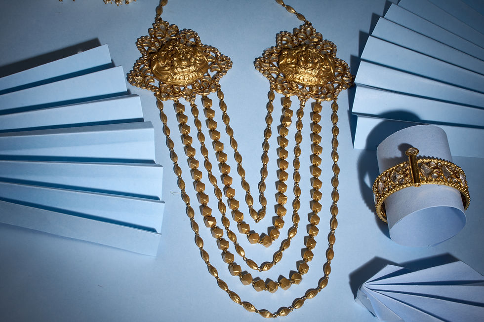 Turquoise & Kundan Chand Bali Earrings with Heavy Carved Ring